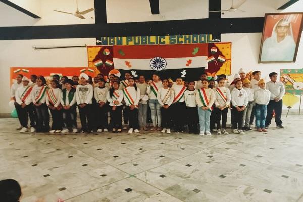 ਲੁਧਿਆਣਾ : ਐੱਮ ਜੀ ਐੱਮ ਪਬਲਿਕ ਸਕੂਲ, ਲੁਧਿਆਣਾ ਵਿੱਚ ਬਸੰਤ ਪੰਚਮੀ ਅਤੇ ਗਣਤੰਤਰ ਦਿਵਸ ਬੜੀ ਧੂਮਧਾਮ ਨਾਲ ਮਨਾਏ ਗਏ। ਸਾਰੇ ਵਿਦਿਆਰਥੀ ਬਹੁਤ ਉਤਸ਼ਾਹਿਤ ਸਨ। ਪ੍ਰੋਗਰਾਮ ਦੀ ਸ਼ੁਰੂਆਤ ਸਰਸਵਤੀ ਵੰਦਨਾ ਨਾਲ ਕੀਤੀ ਗਈ। ਇਸ ਤੋਂ ਬਾਅਦ ਬੱਚਿਆਂ ਨੇ ਦੇਸ਼-ਭਗਤੀ ਦੇ ਗਾਣੇ ਗਾ ਕੇ ਸਾਰੇ ਵਿਦਿਆਰਥੀਆਂ ਵਿੱਚ ਦੇਸ਼ ਭਗਤੀ ਦਾ ਜੋਸ਼ ਭਰ ਦਿੱਤਾ। ਕੁਝ ਬੱਚਿਆ ਨੇ ਕਵਿਤਾਵਾਂ ਸੁਣਾਈਆਂ ਅਤੇ ਕੁਝ ਵਿਦਿਆਰਥੀਆਂ ਨੇ ਦੇਸ਼ ਭਗਤਾਂ ਨਾਲ ਸੰਬੰਧਿਤ ਝਾਂਕੀਆਂ ਕੱਢੀਆਂ।